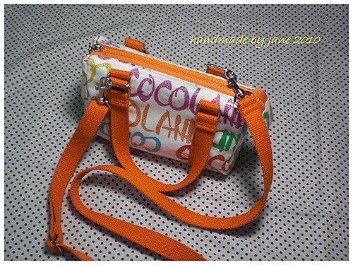 第一眼我沒注意是防水布包。。覺得是塗鴉包的風格。。 :D 橘很亮。。隔間很讚。小包真的小巧我都愛耶。。 :x